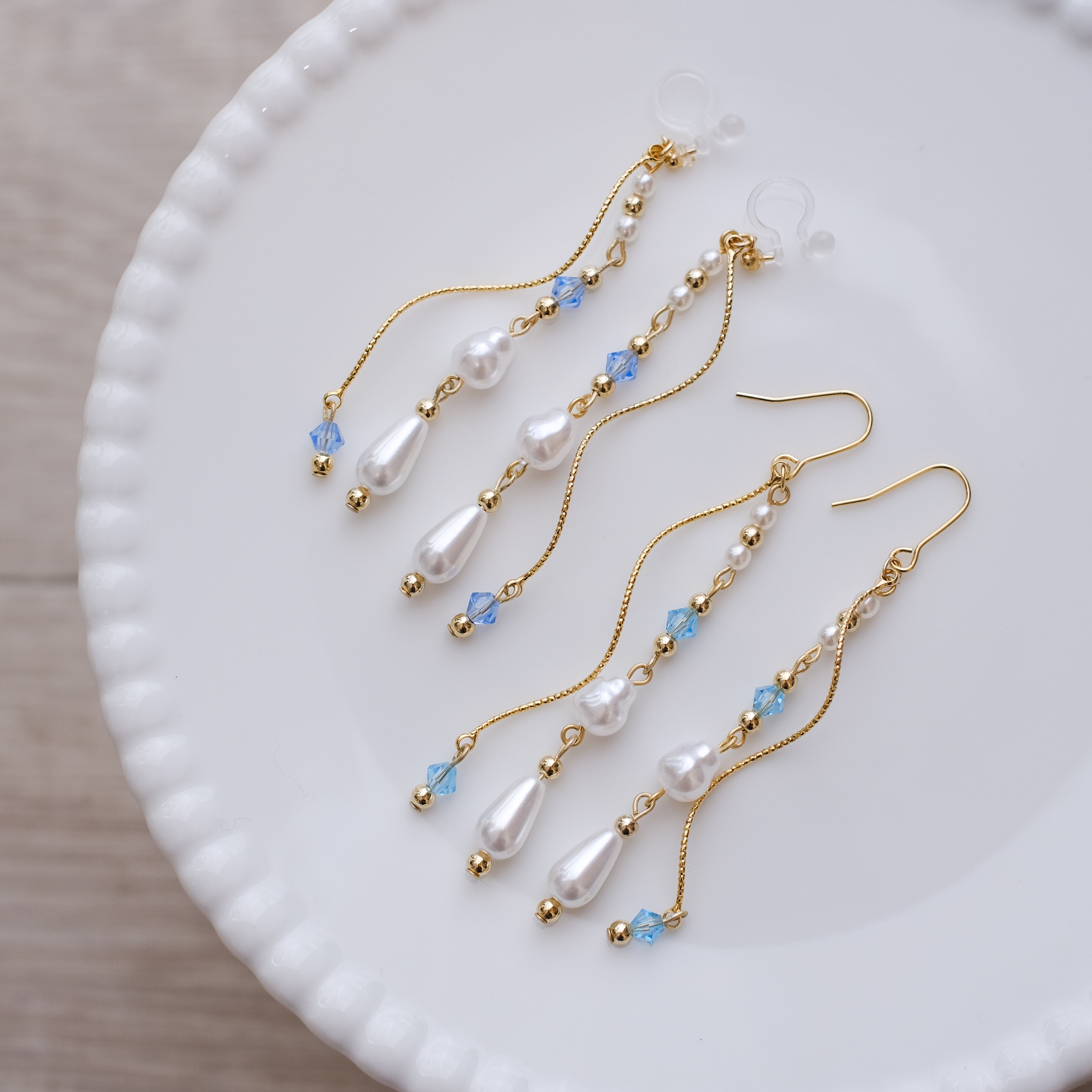しずくパールとスワロフスキーが揺れるたび輝きます。
