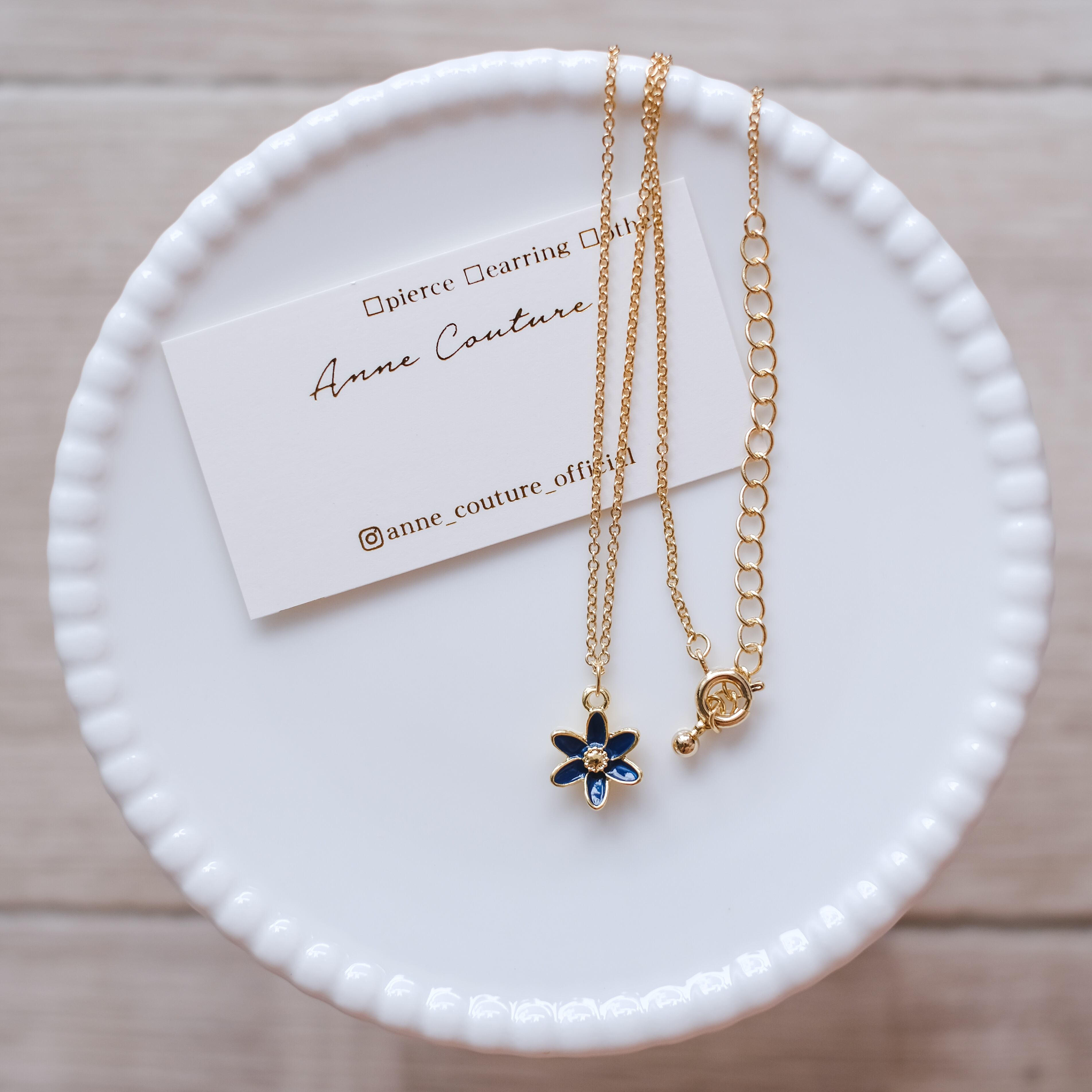 プチフラワーネックレス(ネイビー) | AnneCouture